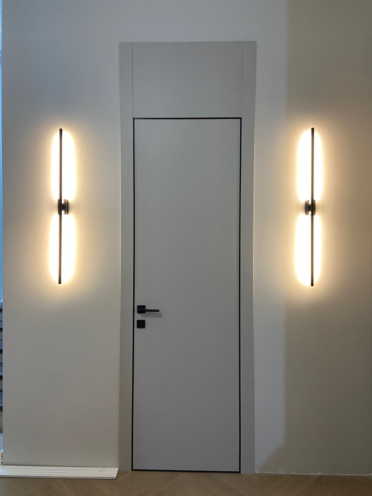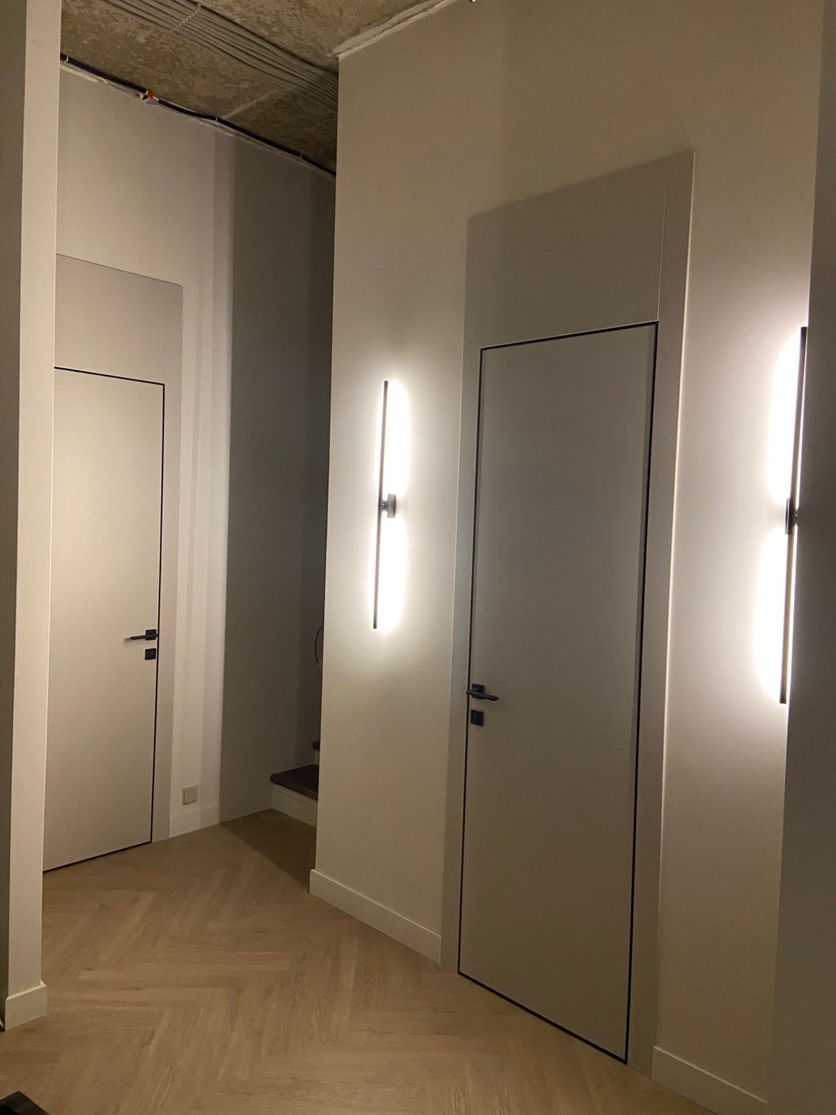 4 межкомнатные двери с фальш - фрамугами, заказная входная дверь с умным замком заказчика и порталом soft-touch.