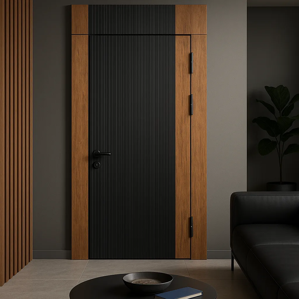 Трехконтурная дверь с максимально тепло и шумоизоляцией. Панели МДФ 16 мм. Фальшфрамуга. Замок 4 класса безопасности.