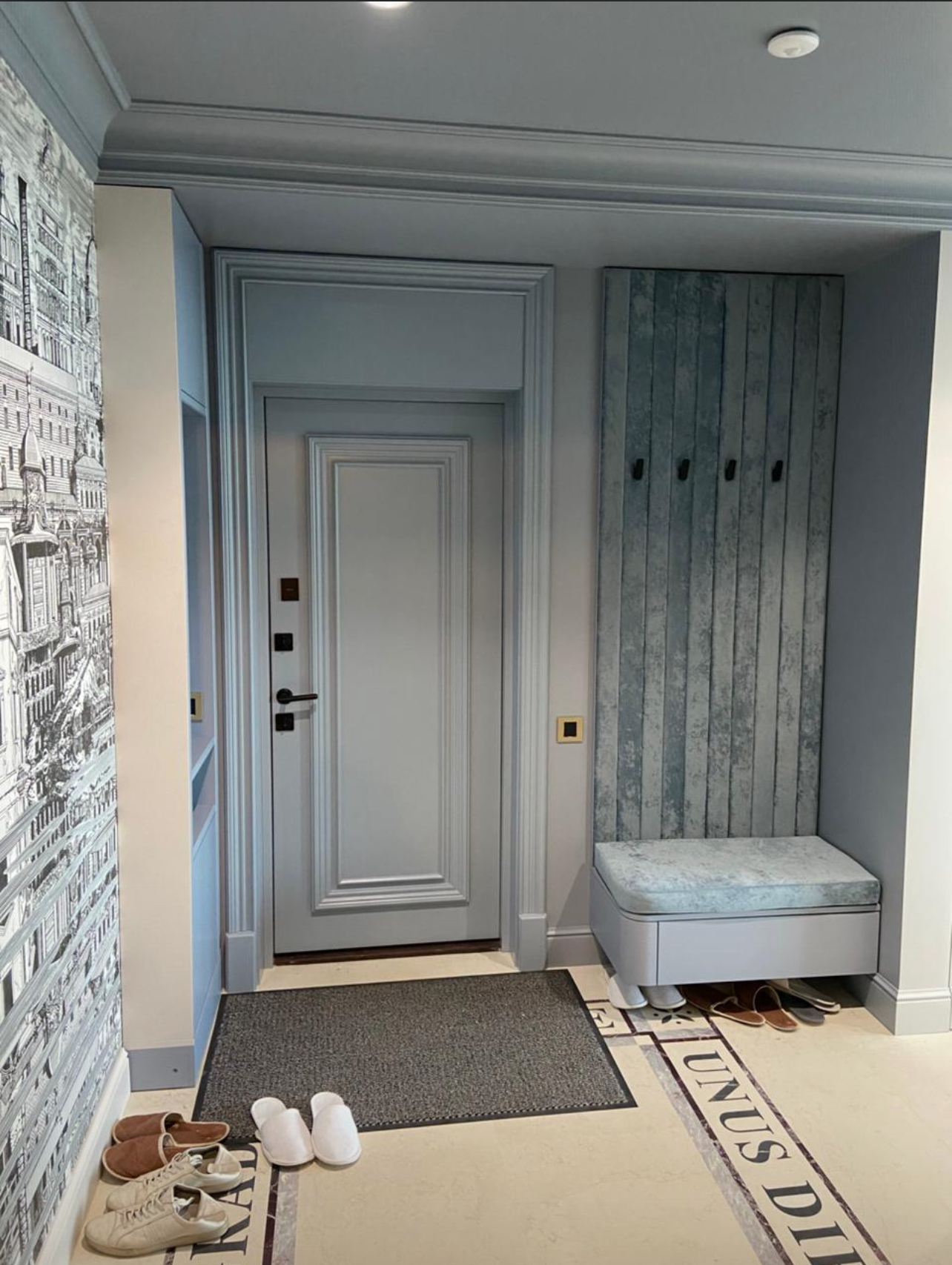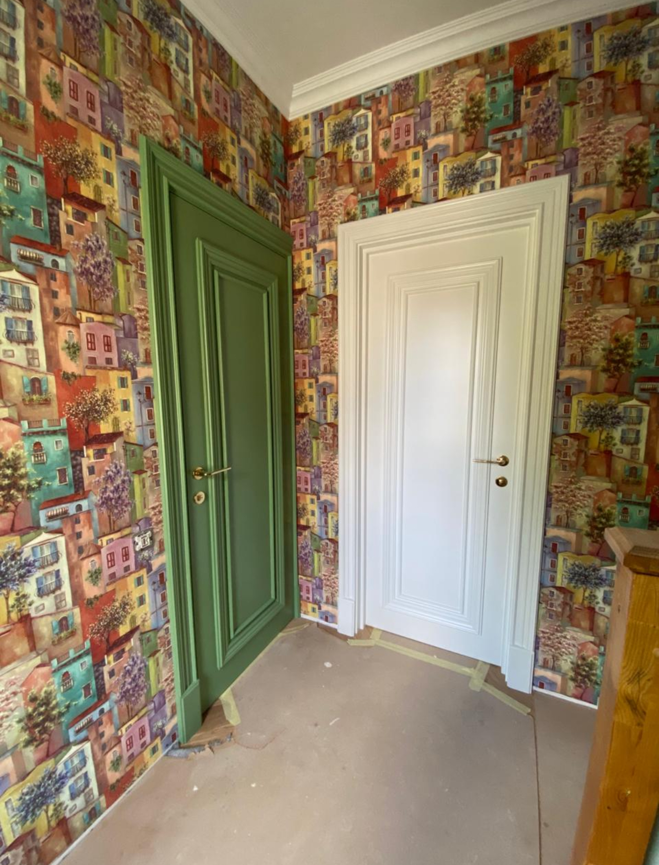 4 двери в эмали, панель на входную дверь с порталом и фальш фрамугой.
