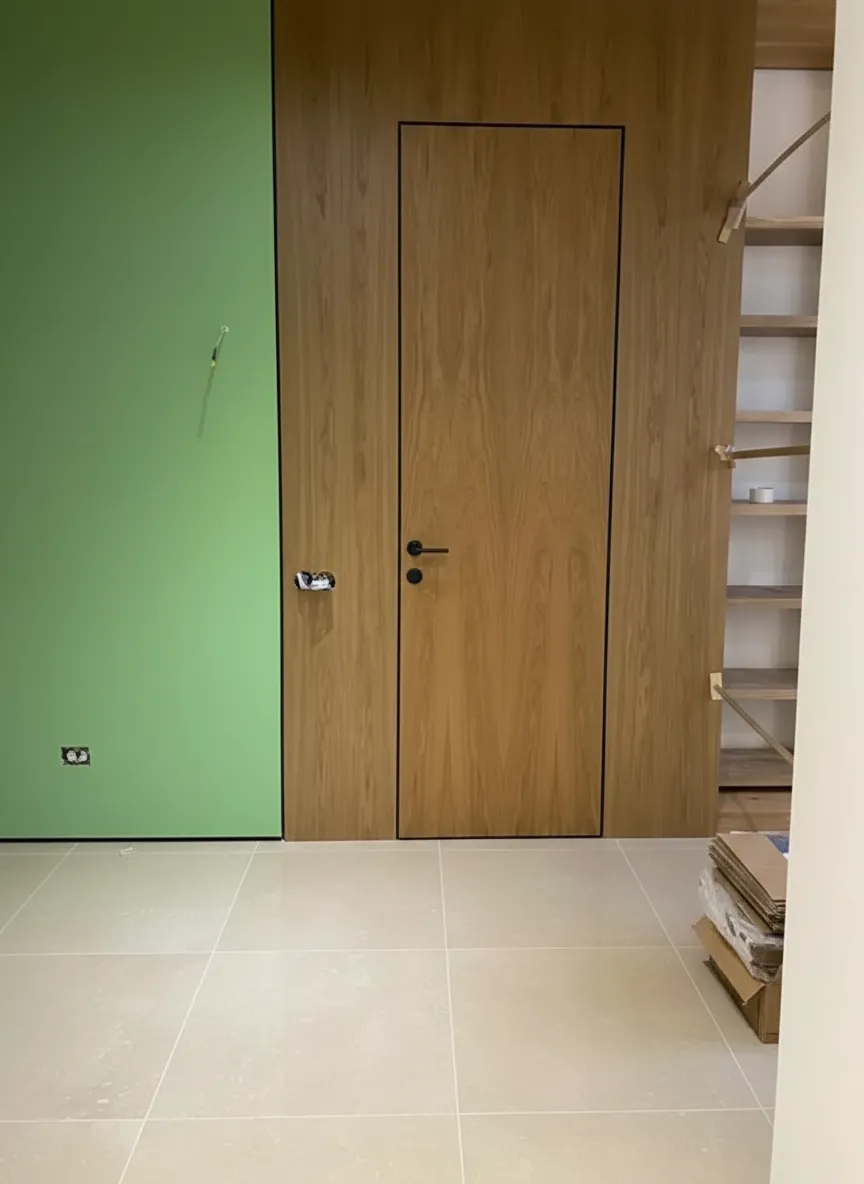 Скрытая дверь высотой 2300 мм со стеновыми панелями, панель на входную дверь со стеновыми панелями.