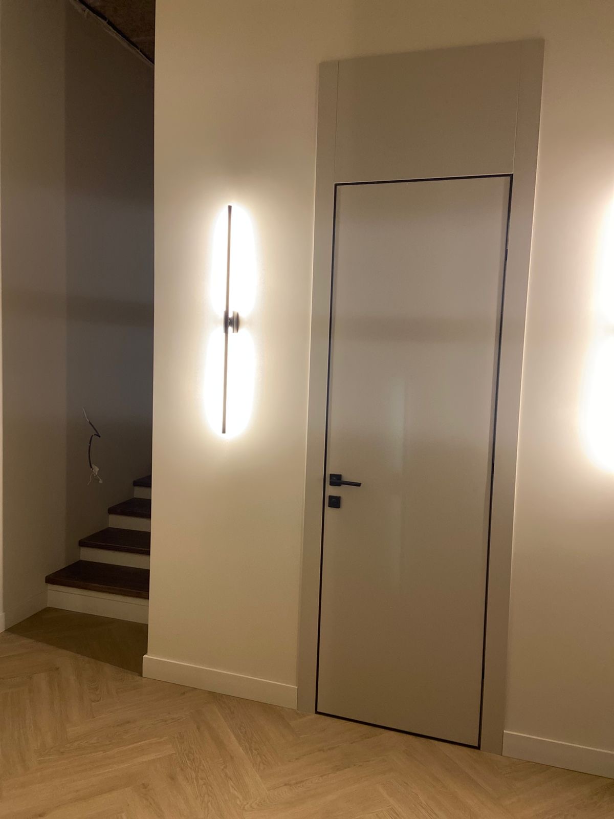 4 межкомнатные двери с фальш - фрамугами, заказная входная дверь с умным замком заказчика и порталом soft-touch.