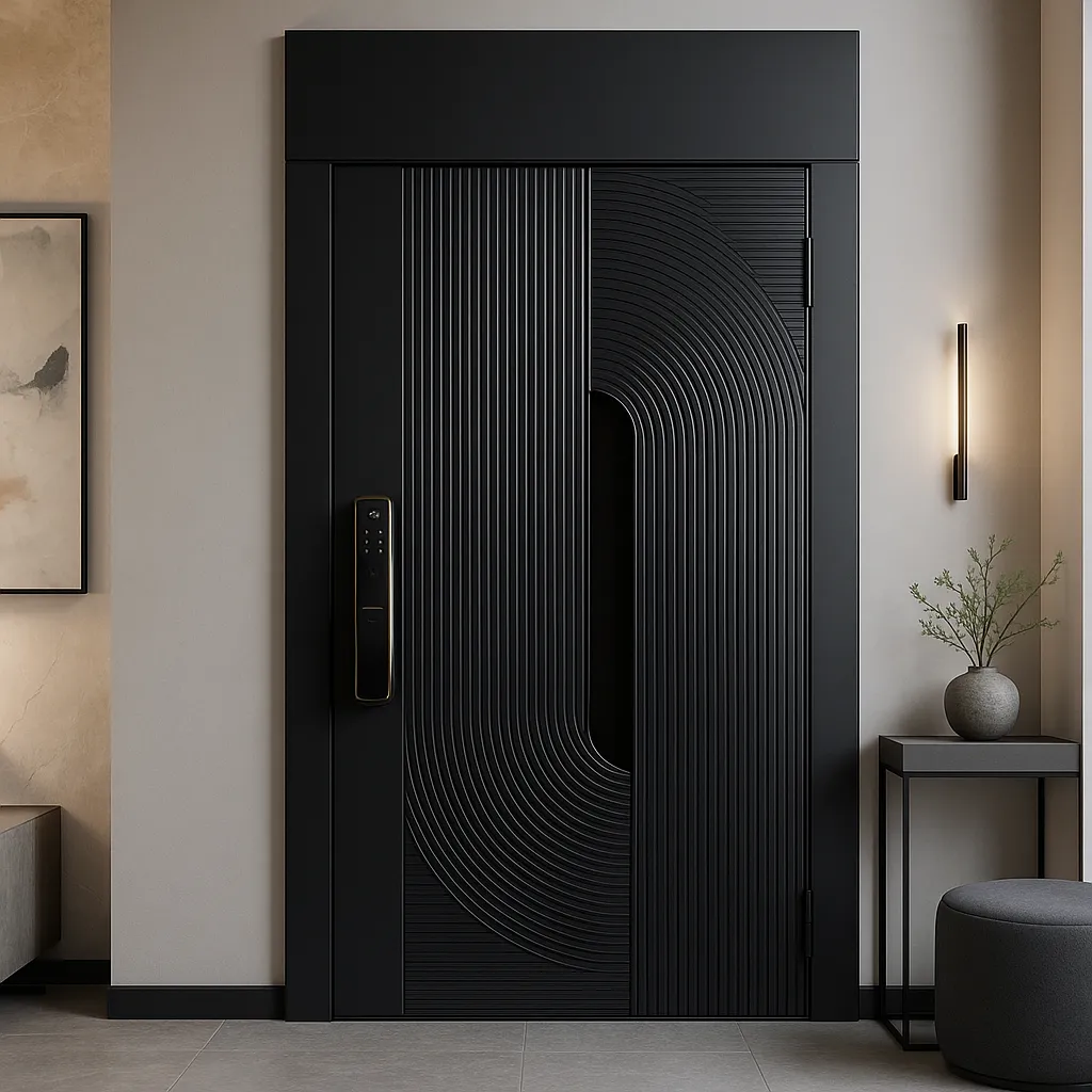 Офис метро Тульская. Входная группа с фальшфрамугой выполнена под заказ. Панели МДФ фрезерованные по эскизу заказчика и выкрашены по РАЛ. Электронный биометрический дверной замок со сканером отпечатков пальцев. Способ открытия: распознавание лица, отпечаток пальца, карта, пароль, ключ. Стоимость объекта 218 000Р август 2023 года).