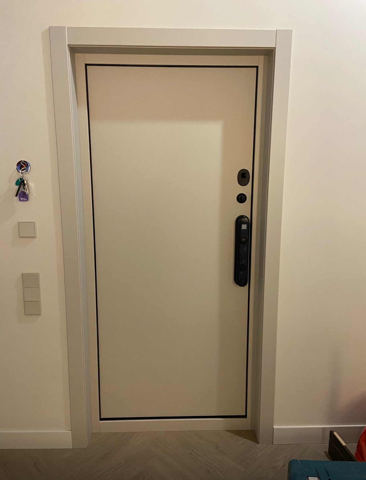 4 межкомнатные двери с фальш - фрамугами, заказная входная дверь с умным замком заказчика и порталом soft-touch.