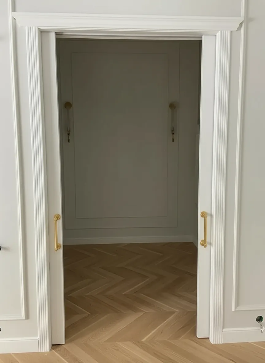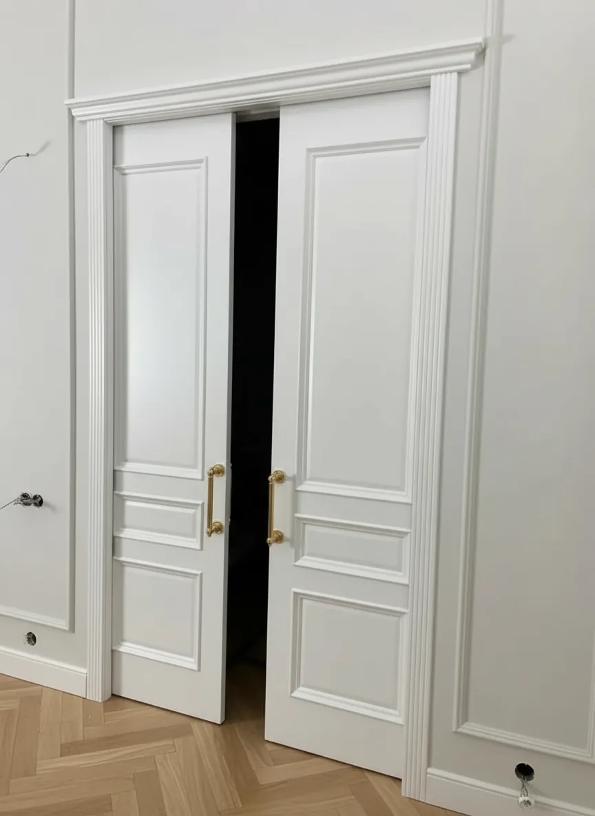 Полотна в эмали с капителями, раздвижные в скрытом пенале.