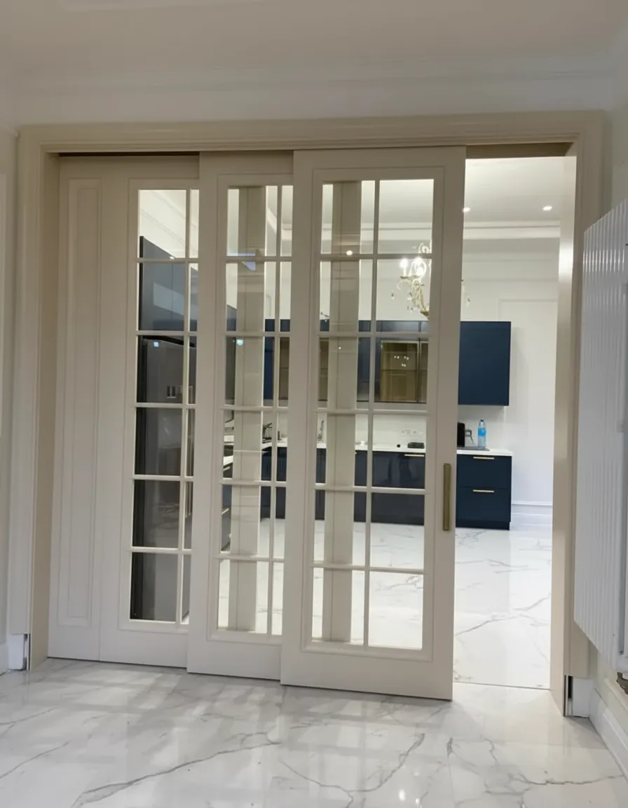 Нестандартное трехстворчатое раздвижное полотно в эмали.